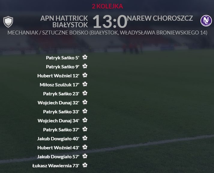 2. kolejka i drugie zwycięstwo. Zespół Tygrysów po dwóch spotkaniach przewodzi w ligowej tabeli. W trzeciej kolejce ze względu na wycofanie się z rozgrywek zespołu z Mielnika, tygrysy mają pauzę. Na murawie zawodników APN Hattrick zobaczymy 20.09 w spotkaniu z Magnatem Juchnowiec.