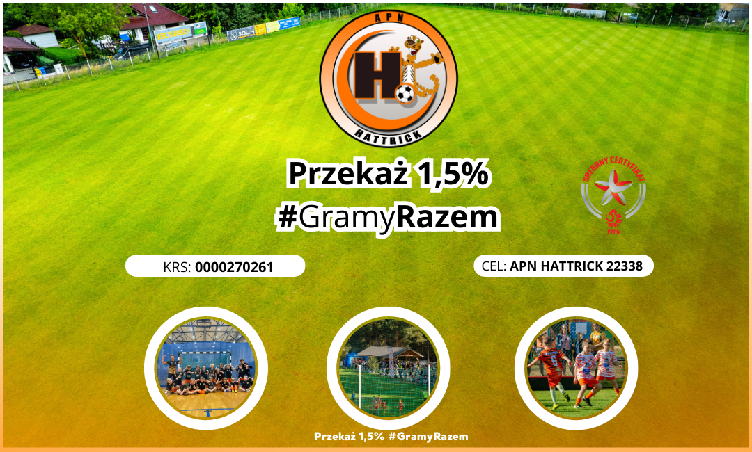 Zbliża się termin wypełnienia zeznania podatkowego za rok 2024, więc gorąco zachęcamy, by przy okazji pamiętać o młodych „tygrysach”. Przekazanie 1.5% na rzecz Akademii APN Hattrick nic Was nie kosztuje, a dla Nas znaczy naprawdę wiele.